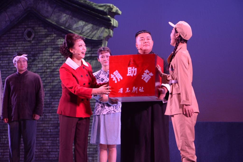 号角吹响,大幕拉开,逼真的舞台效果让观众随演员们一同回到上世纪50年代初期抗美援朝、保家卫国的激情岁月。为了响应国家号召,常香玉开始义演筹资为国募捐:“在绣楼我奉了我那小姐言命,到书院去探那先生的病情,上绣楼我要把小姐吓哄,我就说呀,张先生的病疾可是不轻!”常香玉的扮演者黄慧慧用一曲“豫”味十足的《红娘》选段,瞬间把观众拉进豫剧大世界。