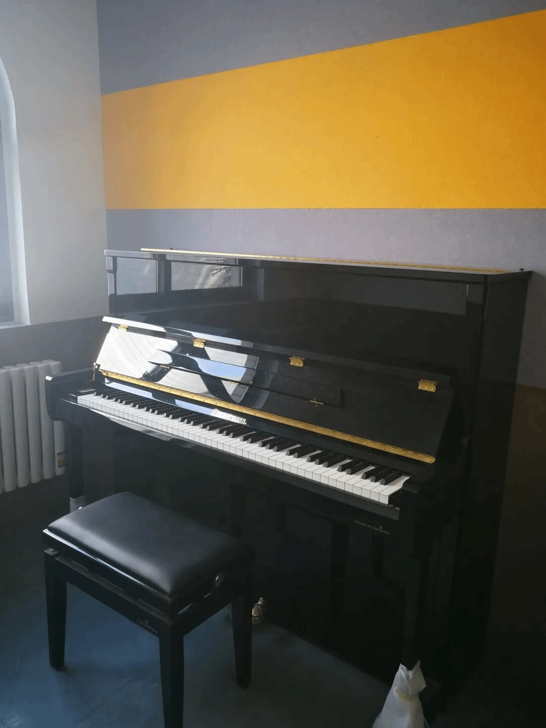 ·琴房升级:143间琴房全部进行了隔音改造,墙面采用环保吸音棉与灰黄(寓意辉煌)拼色设计,地面铺设防滑地胶,确保每间琴房的隔音效果达到专业隔音级标准。