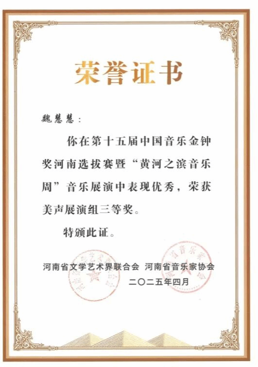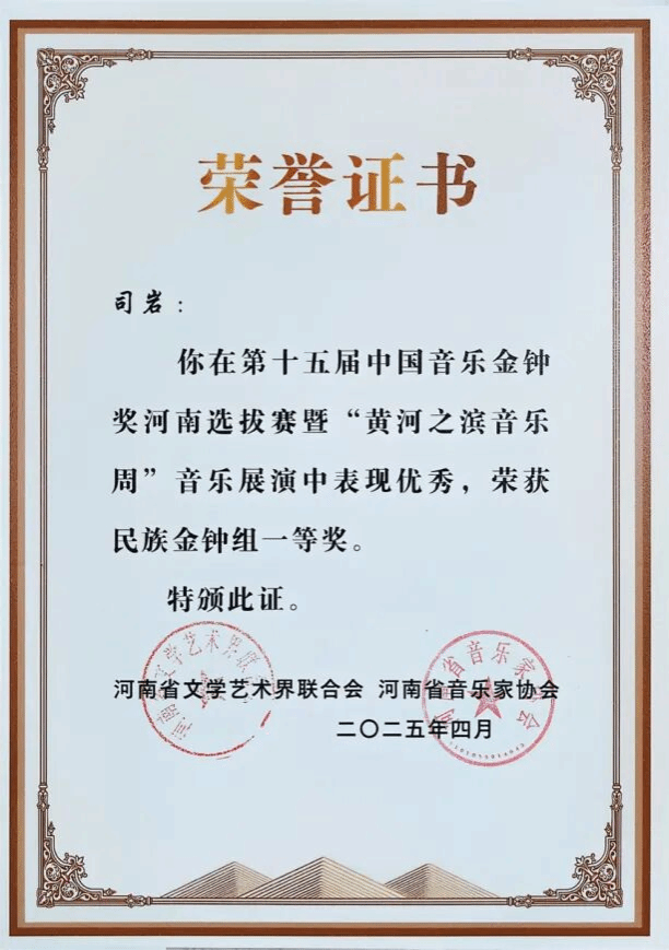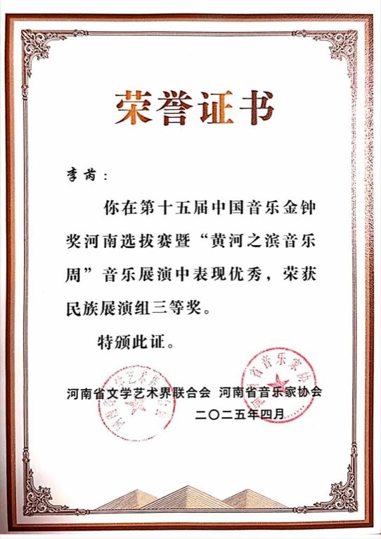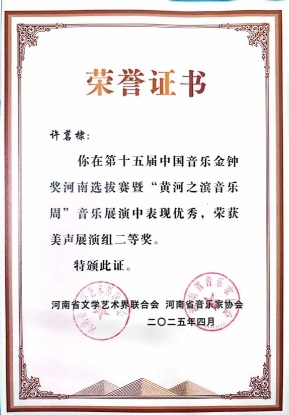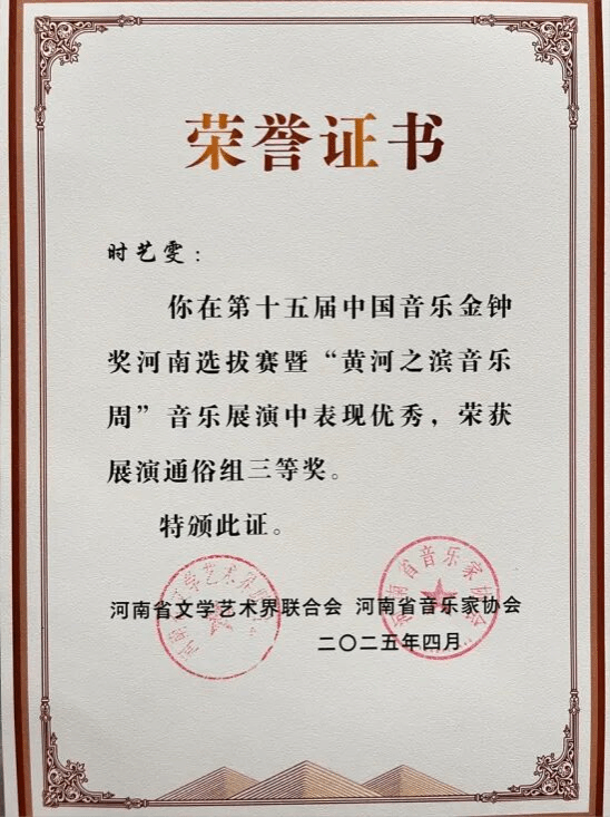 2025年4月24日,由河南省文学艺术界联合会、河南省音乐家协会共同主办的第十五届中国音乐金钟奖河南选拔赛暨“黄河之滨音乐周”在河南周口、洛阳圆满落下帷幕。此次选拔赛汇聚了全省各地的优秀人才,为观众们带来了一场场精彩绝伦的音乐盛宴。