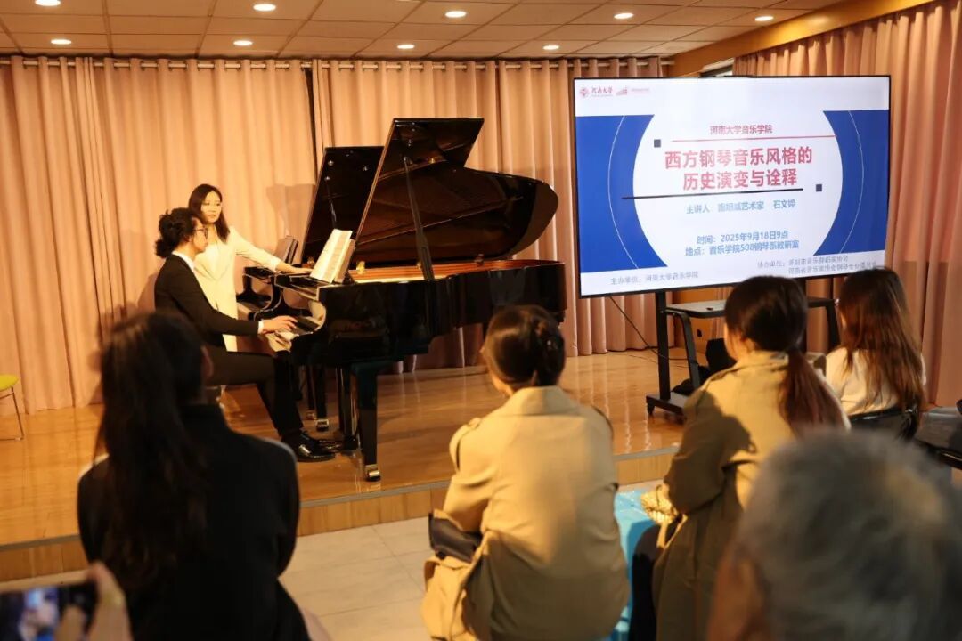 钢琴教学工作带来的示范指导。聆听讲座的师生纷纷表示,这场讲座公开课将作品风格与示范演奏紧密结合,为钢琴“一对一教学”提供了专业参考。本场讲座不仅是一场学术的传递,更是一次艺术的共鸣。它以音乐史为经纬,以作品为纽带,在追溯西方钢琴风格演变的同时,深化了师生对钢琴经典作品的理解,将钢琴教学与美育浸润推向更高水平和更高境界。