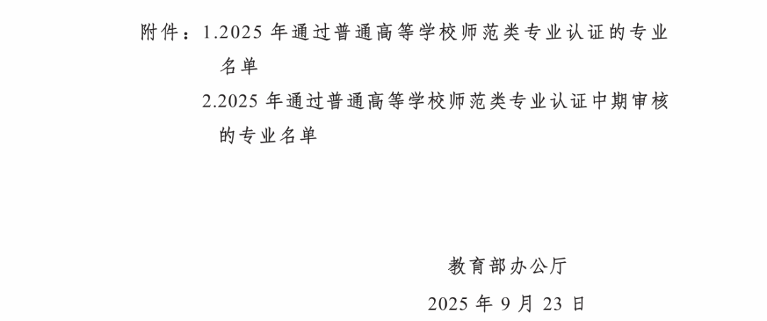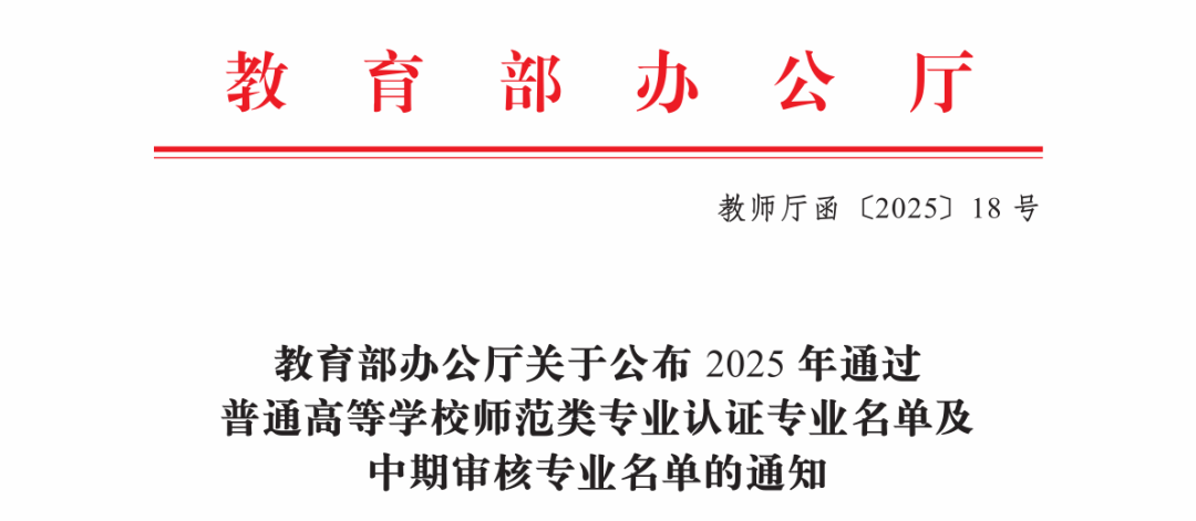 近日,《教育部办公厅关于公布2025年通过普通高等学校师范类专业认证专业名单及中期审核专业名单的通知》正式印发,K7娱乐