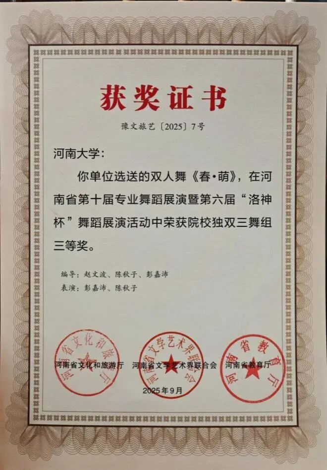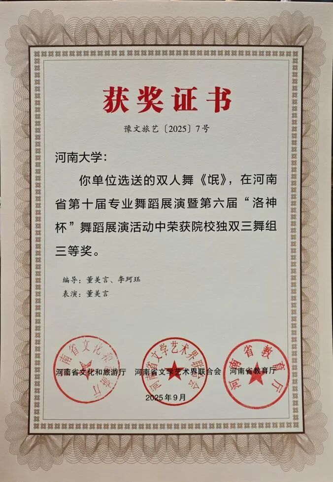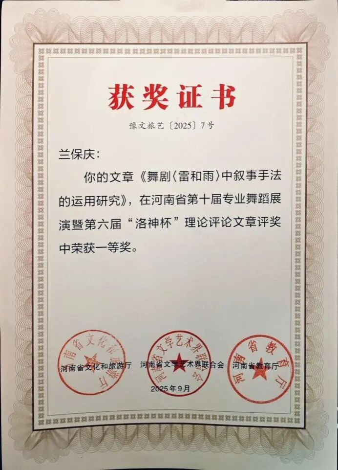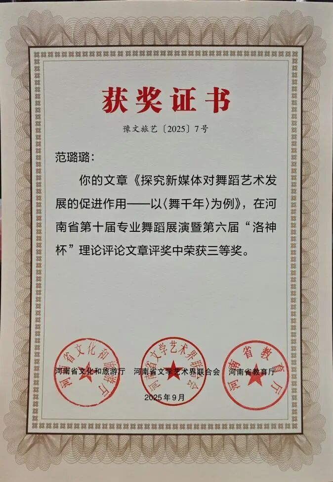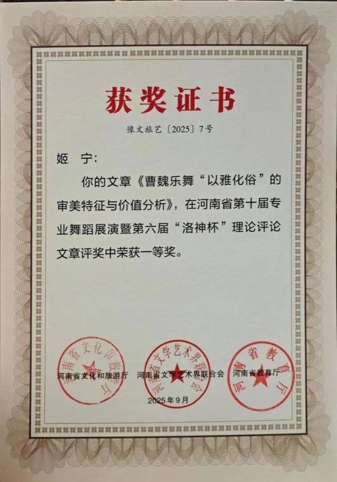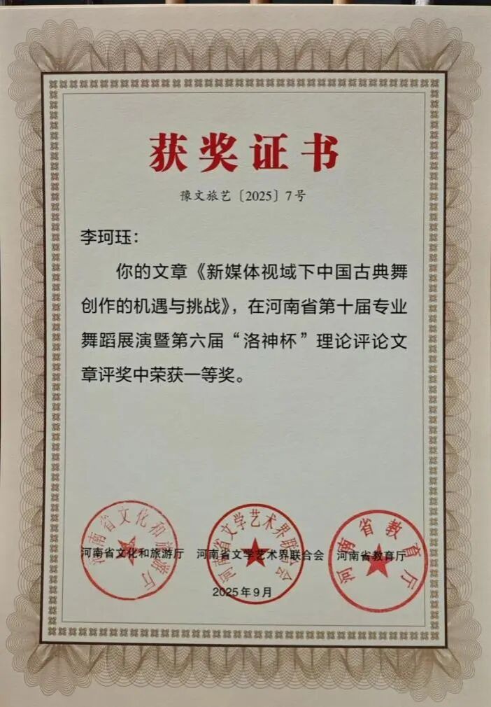 此次双科奖项的获得,是K7娱乐 舞蹈系多年来坚守“创作与科研并重、实践与理论双驱”的丰硕成果。未来,舞蹈系将以此为新起点,持续发挥专业优势,在推动学院舞蹈教育高质量发展的进程中主动担当,在传承创新中原优秀传统文化的道路上稳步前行,为行业培养更多高素质人才,贡献更多富有感染力与文化底蕴的艺术成果。