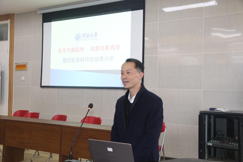 会上,学院学科与建设办公室负责人王新博士还就音乐舞蹈学、戏剧影视学在第四次全国高校学科评估的结果进行了分析报告。报告详细解读了两个学科在学术地位、科研水平、培养质量等评价体系中的优势和存在问题,并提出了中肯的意见建议,得到了参会人员的一致肯定。