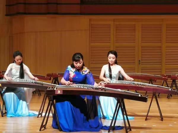 其中,《秦土情三重奏》由金亚迪老师领衔,作为陕西筝派名曲,采用“苦音”的特性音调,对演奏技法要求极高。《汉江韵》是河南筝派的传统经典曲目。汲取河南豫剧、越调、曲剧等地方戏曲素材,使用单指弹弦等技法模拟打锣、唢呐和唱腔,欢快、喜气、亲切,将河南人粗犷、泼辣、正直的形象表现得淋漓尽致,具有浓郁的中原地方风味。精彩的演出令现场观众掌声不断。