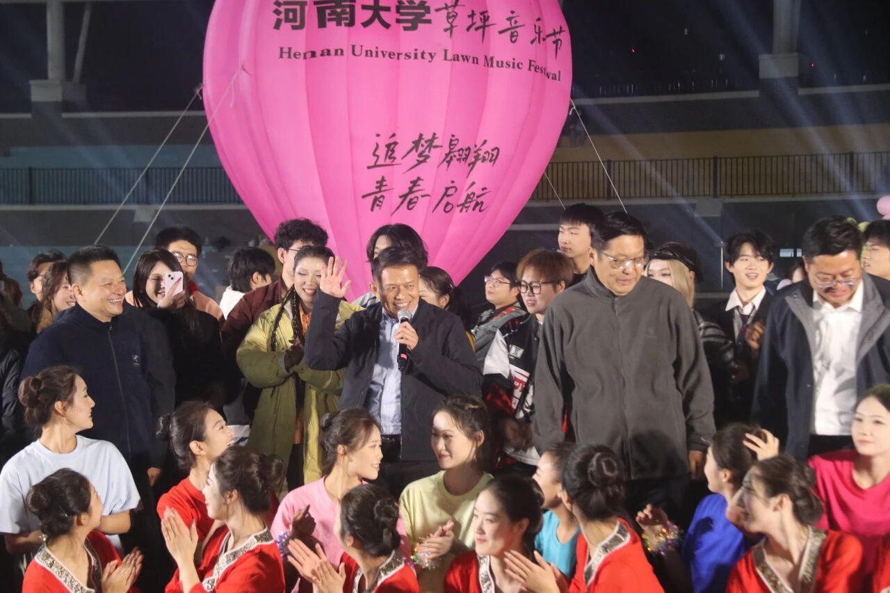 主办的河南大学草坪音乐节,在郑州校区操场精彩上演。校党委书记季波、党委副书记杨萌芽以及相关职能部门、院系主要负责人与现场的2300余名学生共同观看了此次音乐节。