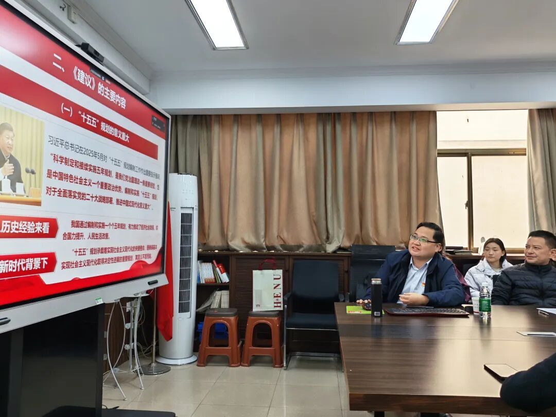 在党建活动室举办学习贯彻党的二十届四中全会精神专题宣讲报告会。学院特邀河南省青年理论宣讲专家、河南大学招生办公室主任高冬东作专题辅导。院党委书记王志国主持报告会。