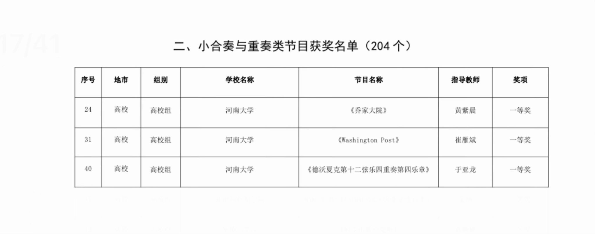 小合奏与重奏类节目获奖名单