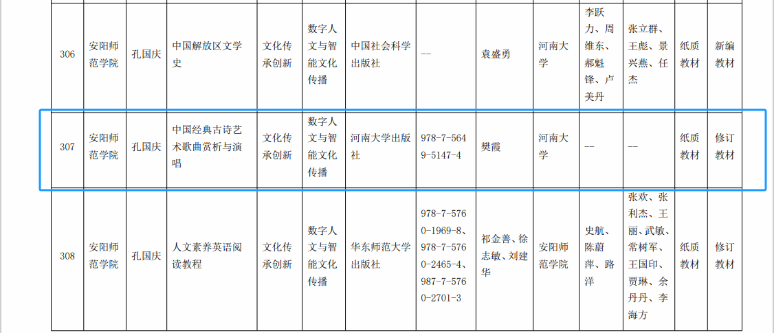 2月16日,教育厅公布河南省普通高等教育“十四五”规划教材立项名单:王思琦教授编著的《流行唱法的理论与实践》和樊霞副教授编撰的《中国经典古诗艺术歌曲赏析与演唱》获批立项。
