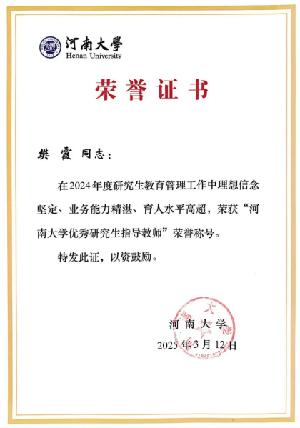 3月21日,河南大学发布《关于表彰研究生教育先进团队和个人的决定》。K7娱乐