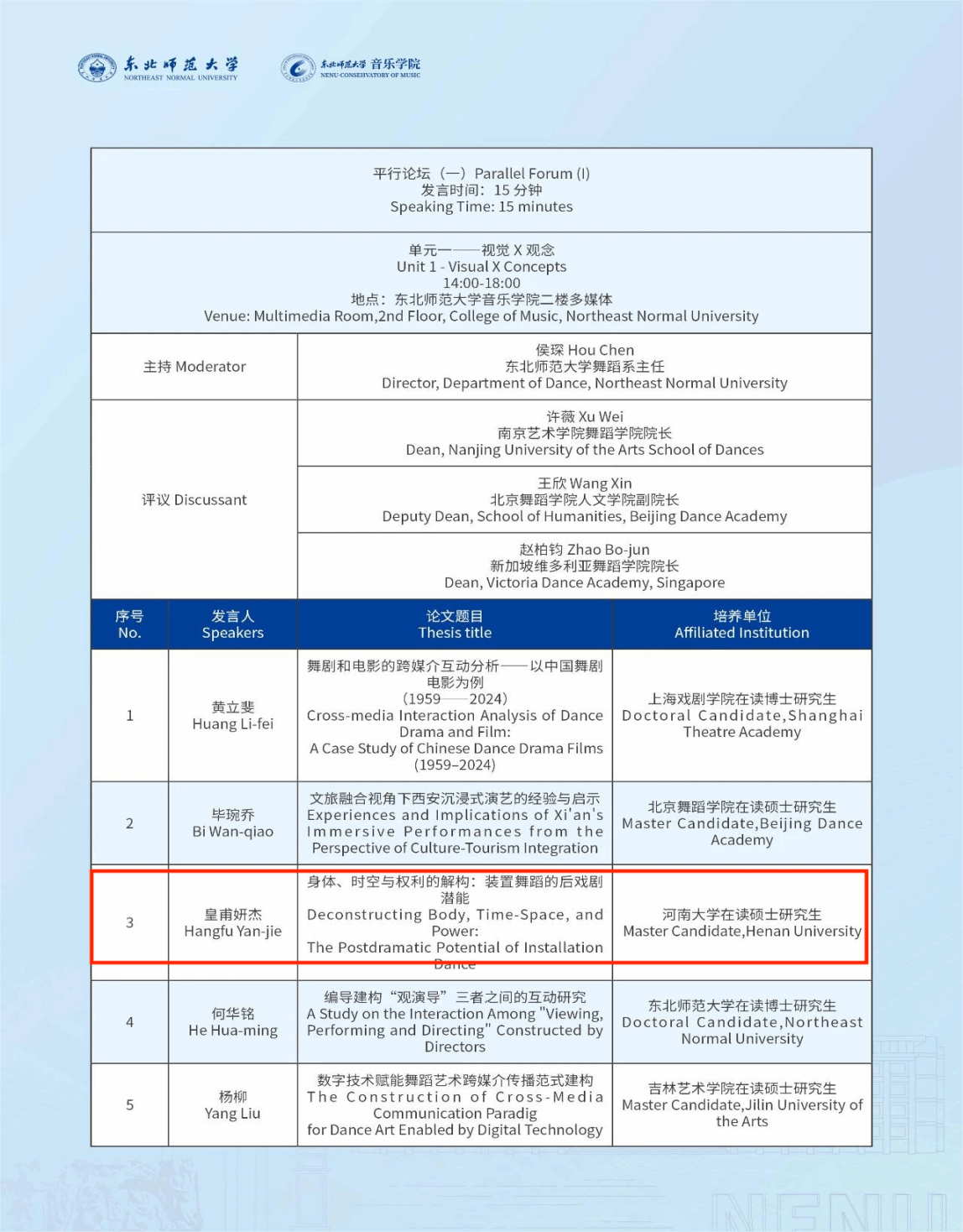 舞蹈系中原文化舞蹈研究所副所长李佼佼老师指导的硕士研究生皇甫妍杰的论文入选2025舞蹈学科硕博国际学术论坛。