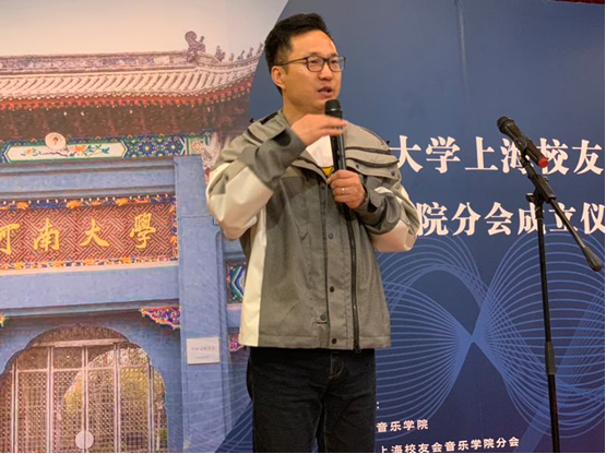 随后,申林在致辞中用“谷”与“雨”形容母校与学子之间的情谊,表达了河大学子对母校的感激之情。河南大学上海校友会会长刘献、副会长汤世才、艺术分会会长董德平也发表了热情洋溢的讲话,对分会的成立表示祝贺。