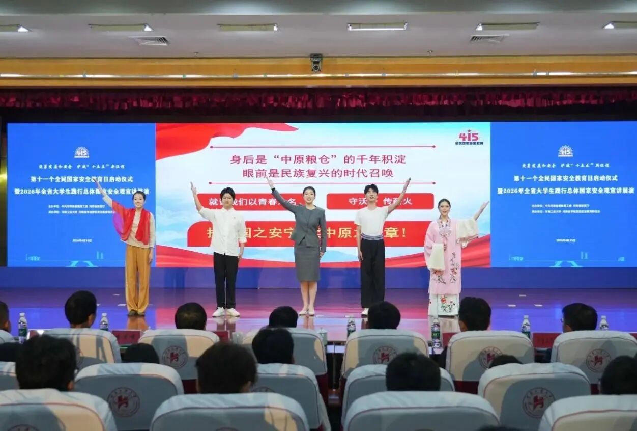 为深入学习贯彻习近平总书记关于总体国家安全观的重要论述及国家安全工作重要指示批示精神,牢固树立并全面践行总体国家安全观。2026年4月15日,中共河南省委教育工委、河南省教育厅、中共河南省委国家安全委员会办公室联合举办了“第十一个全民国家安全教育日启动仪式暨2026年全省大学生践行总体国家安全观宣讲”展演活动。