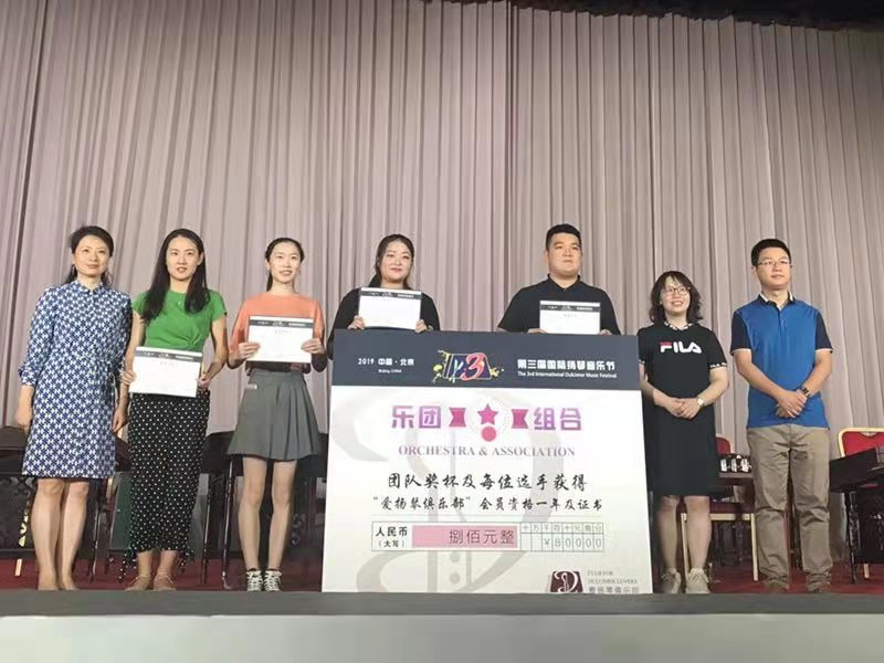 本科生谭亚敏、乔君阁参加专业B组独奏比赛均获金奖,至善扬琴室内乐团谭亚敏、乔君阁、毋雨、秦姜博文参加乐团组合比赛荣获银奖第一名(组合设金奖1名)。据悉,此次比赛评委阵容强大,除了高校扬琴专业的博导、硕导和专业乐团的演奏家外,还特别邀请了杨春林(著名指挥家和作曲家),陈锦标(香港作曲家联会前主席、香港大学音乐系教授、博导),梅广钊(香港著名作曲家、博士、香港作曲家联会主席),于洋(著名青年作曲家、博士、中央民族大学K7娱乐