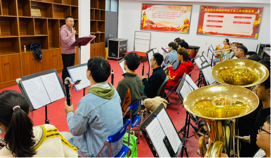 排练期间,孙莹、郭嘉二位老师细心严谨,从乐团演奏的音准、节奏、情绪等细节处入手,对每一个声部的演奏都精益求精,并对弦乐声部和管乐声部进行针对性训练,力求达到最好的状态。乐团的同学们在指挥的高要求、高标准下不断练习,将演奏效果最好的表现出来。经过大家的共同努力,乐团的音色、节奏等方面在短时间内都获得了显著进步。同学们纷纷表示非常珍惜这一次难得的学习机会,一定多用心积累,多耐心训练,努力提高自己的演奏水平和专业素养,更好地参与乐团排练。