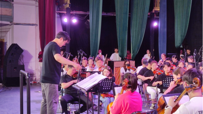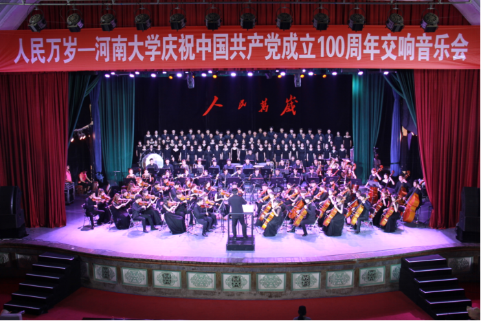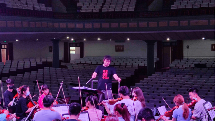 为至善交响乐团进行排练与指导,并于七号晚指挥乐团在大礼堂成功举办了“人民万岁——河南大学庆祝中国共产党成立100周年”交响音乐会。