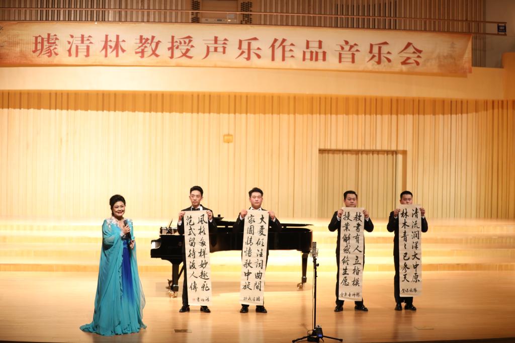 副院长韩梅教授为璩清林教授声乐作品音乐会专门创作了藏头诗:“清流润泽大中原,林木青青已参天;教书育人立楷模,授业解惑终生愿。大爱倾注词曲间,家国情怀歌中旋;风格多样妙趣生,范式留待后生传!”