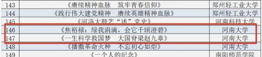 选送的两项作品《焦裕禄:绿我涓滴,会它千顷澄碧》和《一生科学救国梦 大国脊梁赵九章》光荣上榜,并作为优秀作品纳入全国高校思想政治工作网《百年珍贵记忆——全国高校庆祝中国共产党成立100周年原创精品档案》。