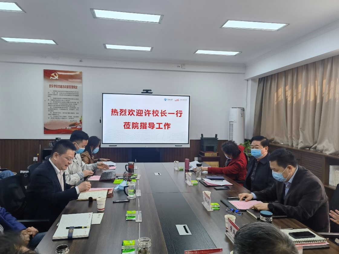 座谈会开始前,许绍康进行现场观摩了学院至善民族管弦乐团的排练,并对学院的教学场地和教学设备进行实地考察。