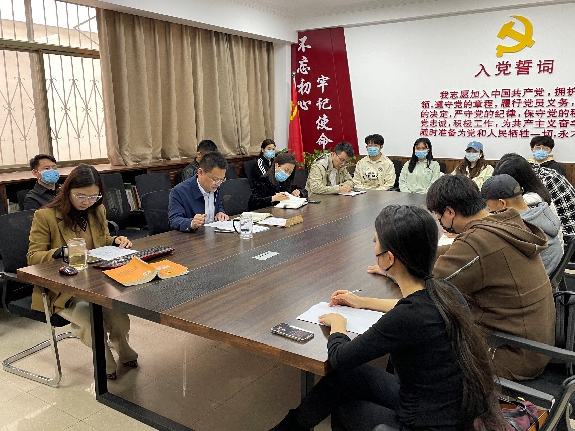 在党建活动室召开会议,学习习近平总书记考察调研中国人民大学重要讲话精神,传达学校学生安全稳定暨疫情防控工作会议精神。学院领导班子成员、全体党支部书记、辅导员、教师代表和学生代表参加了本次会议。会议由院党委书记王志国主持。