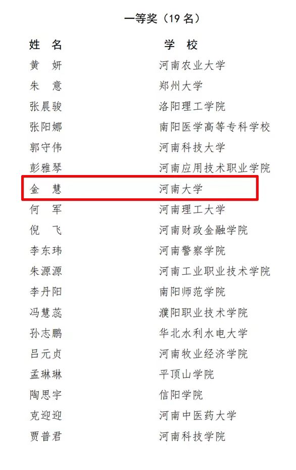 2019级本科生辅导员金慧荣获大赛一等奖。