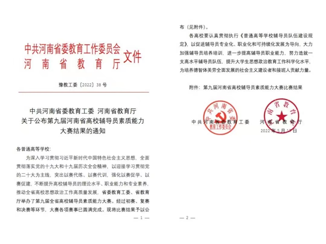 近日,由中共河南省委教育工委、河南省教育厅主办,河南理工大学承办的第九届河南省高校辅导员素质能力大赛在“云端”落下帷幕。来自全省130所高校的133名辅导员参赛,经过激烈角逐,K7娱乐