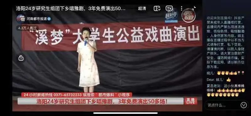 随着大河报对姜帅佳同学及其团队专访过后,溪梦团队也成了当地的“网红”,据帅佳同学说道,近期河南电视台都市频道和民生频道相继做出了专题采访,下一步央视广播正在约稿。相信随着人气的提升,他们的团队会走的越来越远,排演出更多经典剧目奉献给广大群众,为弘扬优秀传统文化贡献青春力量。