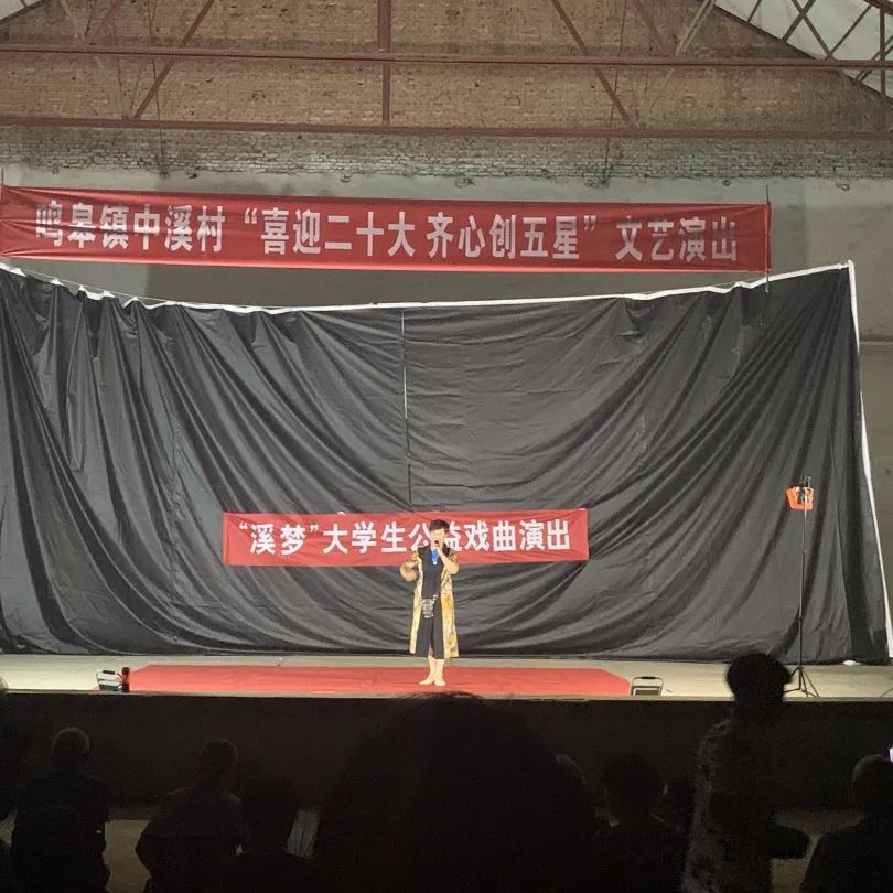 作为团队核心成员的姜帅佳同学表示:戏曲是我国之国粹,是人民群众喜闻乐见的群众性音乐艺术,作为戏曲专业大学生,肩上更是担负着弘扬优秀传统文化,传播戏曲文化的重任。于是,我们一群爱好戏曲的大学生不约而同,自发地组建起了溪梦大学生戏曲公益团队,至今已经举办了50余场公益演出,相继获得了广大群众的好评和认可,甚至有些群众追随我们观看演出。为了能让更多的朋友看到我们的演出,在这次暑假演出中,我们与院中的实践项目所相结合,采用了“抖音线上”+线下的模式进行演出,不仅获得了大家的好评认可,并且教会了许多老年人用线上平台观看与欣赏戏曲,一同感受戏曲文化之美。