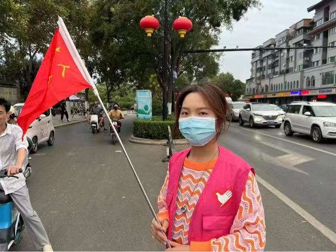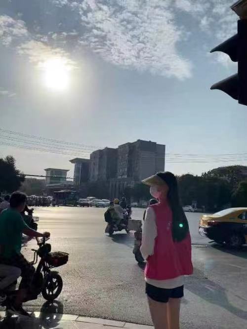 志愿者们身穿粉红马甲,手持“文明交通 让爱先行”交通指挥旗,准时站在东司门交通岗的四个执勤点位,在人行道进行交通劝导,协助交警指挥车辆交通和行人过往,提醒过往车辆减速慢行、礼让行人;耐心劝导行人过马路自觉遵守交通规则,文明出行,制止乱穿马路、逆向行驶、违章带人等不文明行为,赢得过往行人的一致好评,粉红色的身影成为东司门十字岗一道靓丽的风景线。