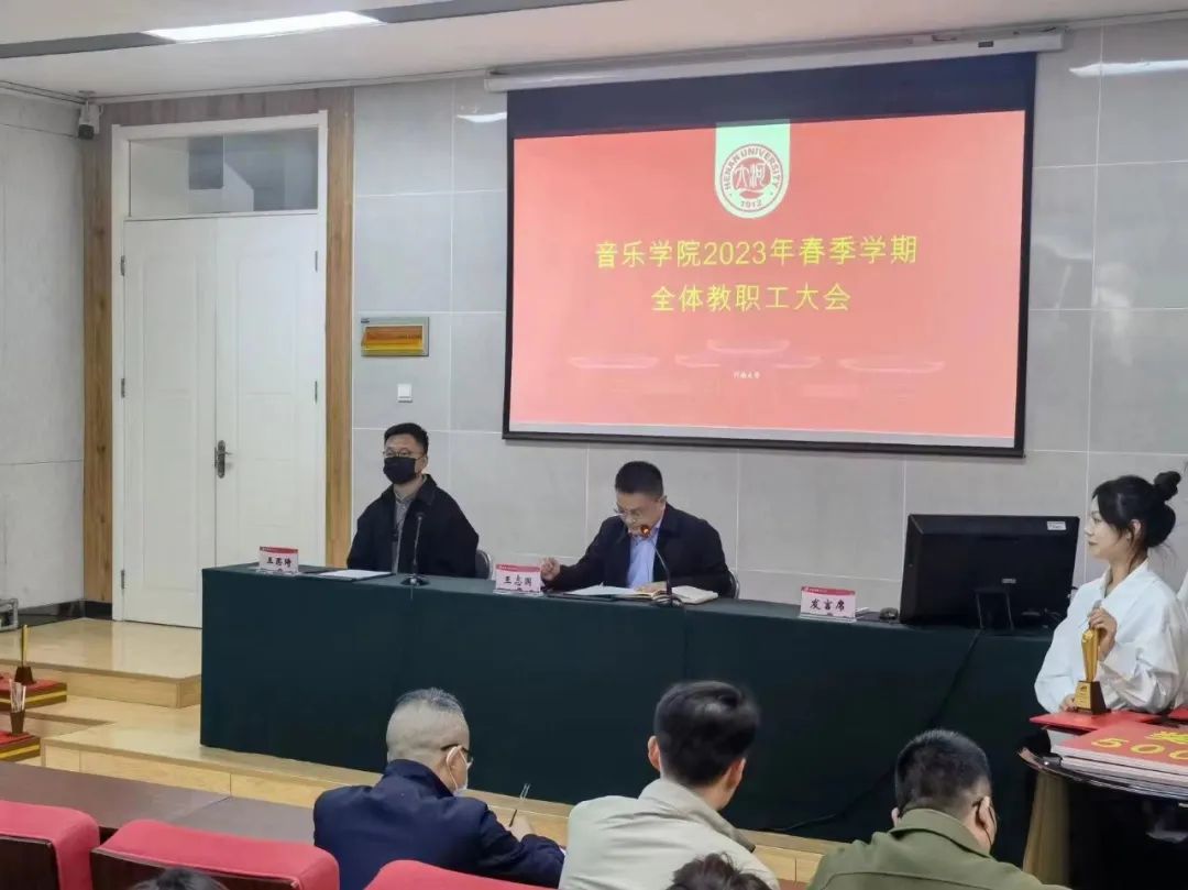 有优秀的传统,坚实的基础,很好的潜力,乘着学校“双一流”建设的东风,一定能够更上一层楼。但要居安思危,深刻认识音乐学科发展的挑战,在不断解决问题、战胜困难中前行。二是聚焦重点。判断工作成效只有一个标准,那就是是否有利于提升学院的核心竞争力。我们要把工作重点聚焦在校党委巡察组反馈意见整改上,聚焦在高层次人才引育上,聚焦在教学科研实践高层次成果产出上。三是振奋精神。这次会议是一次工作报告会,是一次工作安排会,也是一次整改动员会。每一位教职工发展好,所在的科室、系所、支部才能建设得坚强有力;院内各单位发展好,学院才能实现高质量发展。他希望大家秉承“立德、修身、乐艺、践行”的院训,团结一致,勠力同心,为建设“国内知名、区域引领、中原特色”的高水平K7娱乐
