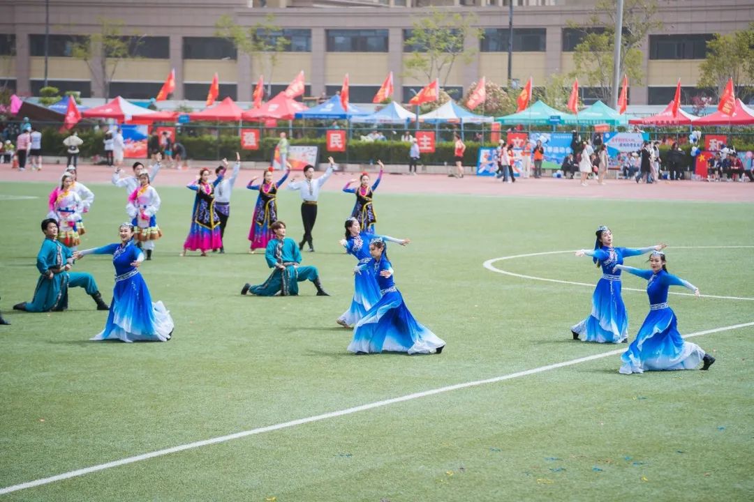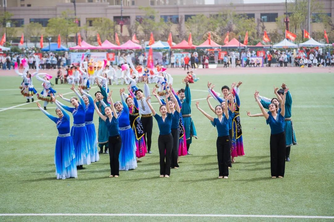 在文艺汇演的环节展示歌舞《向快乐出发》,歌手与舞蹈演员热情展现,活力青春气息随风而至,热血与阳光激情碰撞!原创舞蹈《舞动的石榴籽》,古典舞轻盈而有力,蒙族飒气英爽,维族魅力十足,藏族水袖挥洒似水如波,汉族舞扇抖转,欢庆非凡,最后民族大欢庆,将气氛推上高潮。