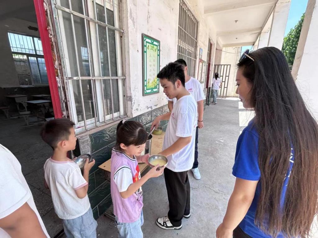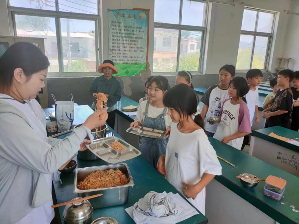 “蒲公英”支教团的志愿者们为老饭店小学的孩子们做饭、发饭
