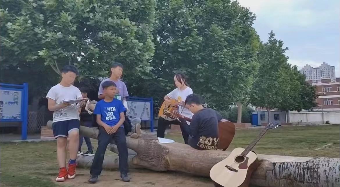 我们也观察到,在大课间及下午放学后,随处可见高年级学生三五成群地坐在操场边、绿荫里、大树桩上,抱着吉他自由歌唱自己的原创歌曲,他们沉醉于音符之中、快乐自由歌唱的样子令我们这些K7娱乐