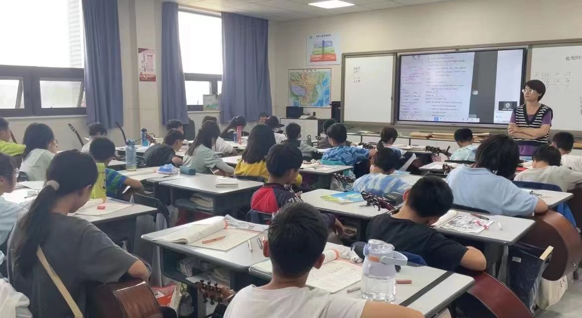 在学科融合方面,在音乐老师和英语老师充分沟通后,英语课上学生可以用吉他弹唱欧美经典英文流行歌曲《加州旅馆》、表演英语音乐剧《音乐之声》,在语文老师和音乐、美术老师的协作下,七年级的学生能够自创自导自演一部90分钟的音乐剧《孔子》……这对学生们来说也是激发兴趣和创造力、培养自信力的有效方式。