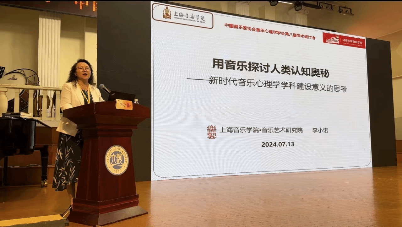 李小诺研究员代表音乐心理学学会对河南大学对本次会议的大力支持表示衷心感谢。她表示,学会每三年召开一次全国性学术研讨会,是国内该领域最新前沿成果交流的高级平台。从学会历届研讨会学者的参与度,议题的丰富性、实证性、研究方法,运用成果的水平等增长的幅度来看,都表现出我国音乐心理学领域良好的发展前景。越来越多的研究与音乐实践更加密切关联,越来越多的学者在国际相关学会任职,多个方向的研究产生了一定的国际影响力,研究队伍的年轻化和国际化,展现出我国音乐心理学学科发展的巨大潜力。她相信各位专家学者、参会代表一定能够在讨论与交流中碰撞出新思想,争鸣出新观点。