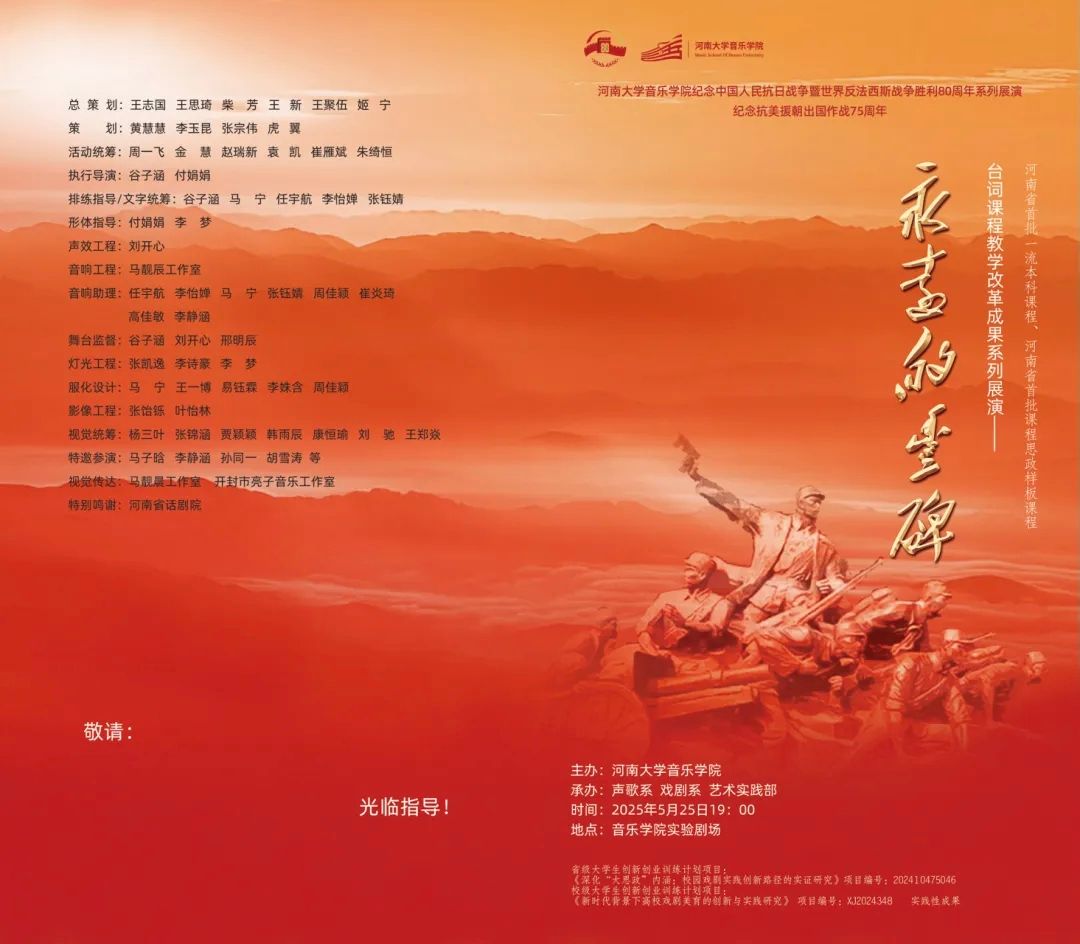 预告|纪念中国人民抗日战争暨世界反法西斯战争80周年系列展演 ——《永远的丰碑》台词课程教学改革成果专场即将开幕