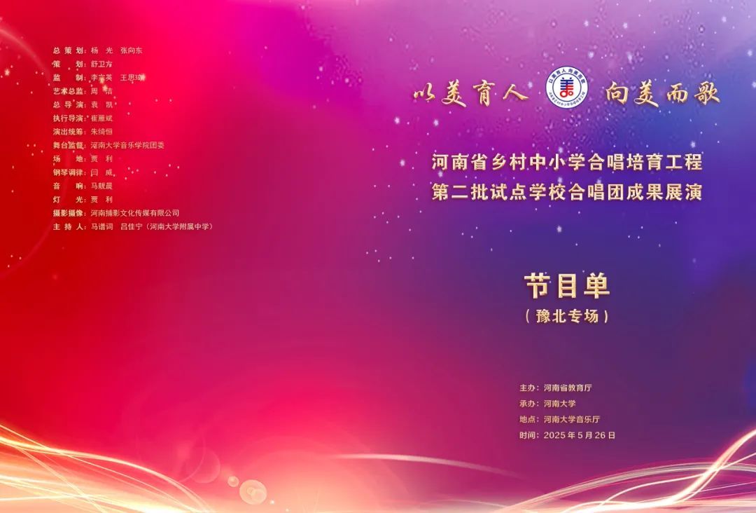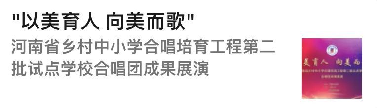 预告 “以美育人 向美而歌”河南省乡村中小学合唱培育过程第二批试点学校合唱团成果展演即将在我校举行
