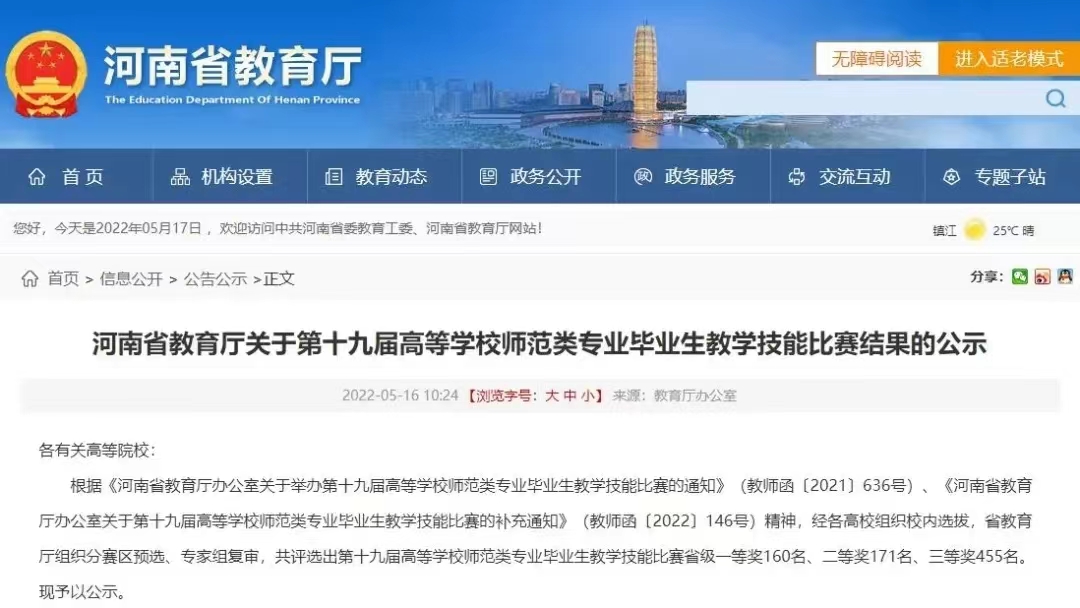 近日,河南省教育厅发布第十九届高校师范类毕业生教学技能比赛结果,K7娱乐