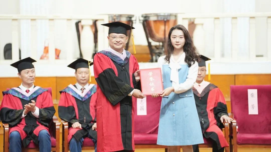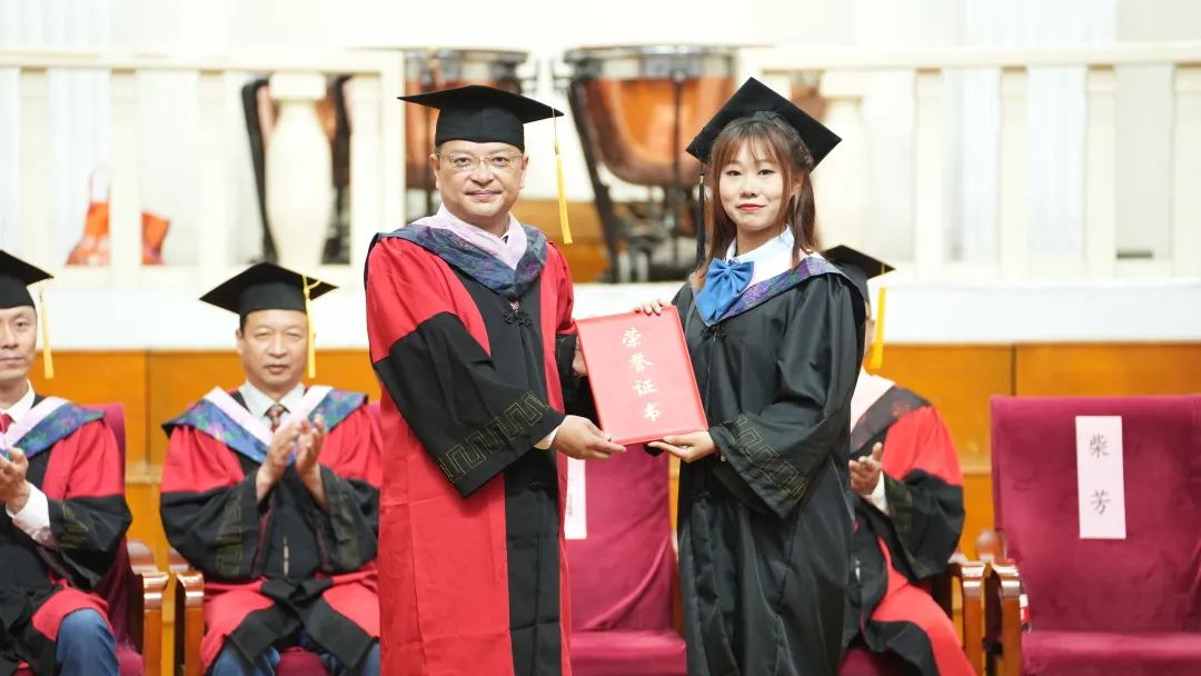 2023届本科毕业生学士学位授予决定》。受校长张锁江委托,院长王思琦逐一为本科生援正流苏颁发毕业证书并合影留念。