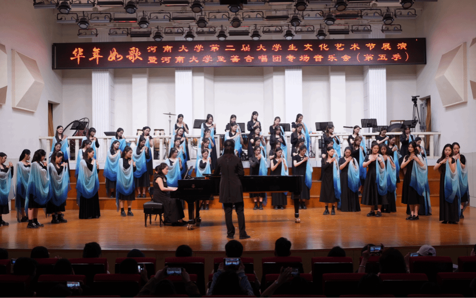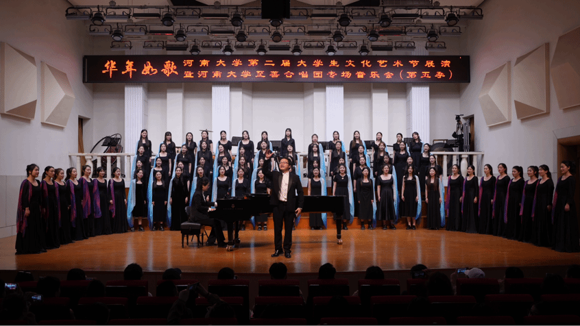 值得一提的是,在去年河南省第七届大学生艺术展演中,河南大学至善合唱团室内团的同学们在袁凯老师的带领下,凭借《天下黄河》《野蜂飞舞》这两首作品斩获声乐组一等奖,在今年六月中旬,他们将代表河南省参加全国第七届大学生艺术展演活动的现场展演。
