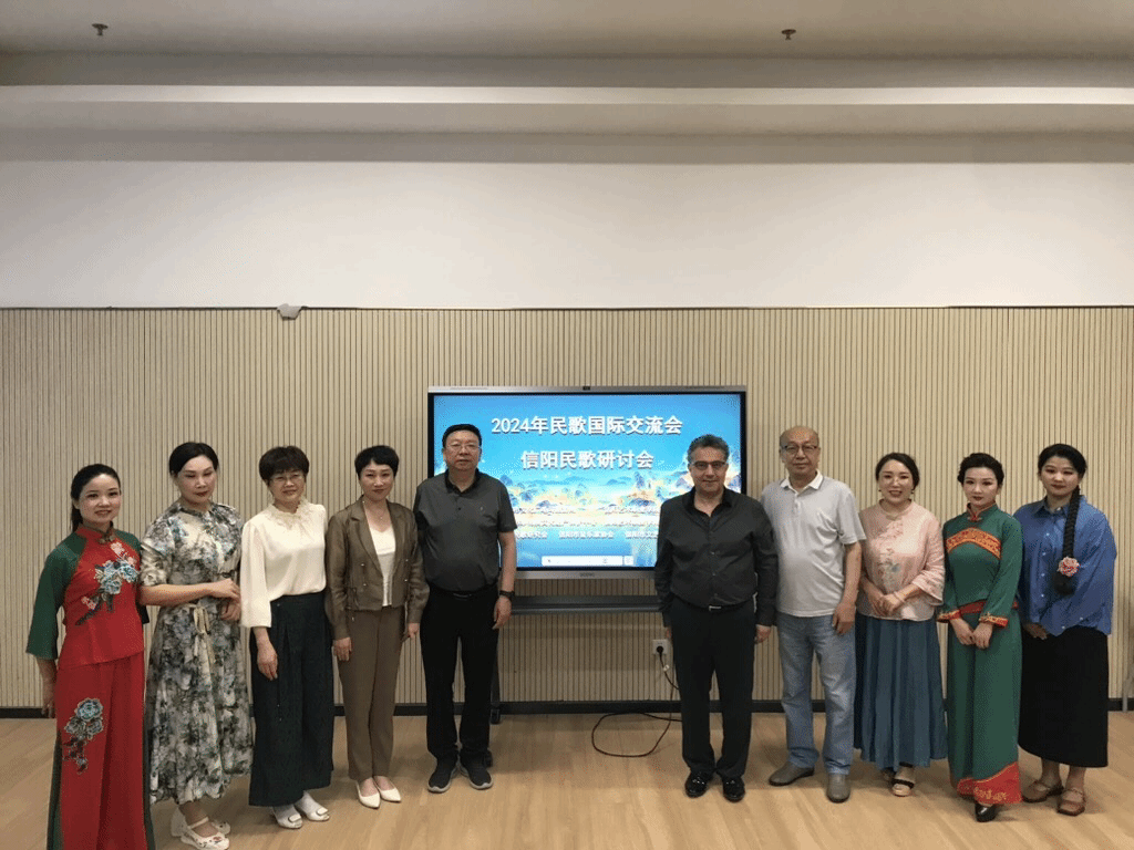 师生一行前往信阳开展音乐文化调研,在信阳艺术职业学院观看了“信阳原生态民歌专场暨民歌国际交流会”。Dell' Atti教授对儿童合唱团演唱的信阳民歌《对花》印象深刻,认为民歌传承应该从孩子们抓起。Caporaletti教授将信阳原生态名歌与“新光韵音乐”理论相结合,介绍了当下世界民族音乐的分类。音乐会结束后,各位专家在民歌国际交流座谈会上,对如何传承保护信阳民歌展开了热烈讨论。