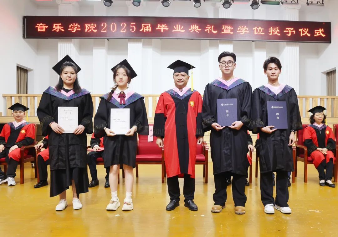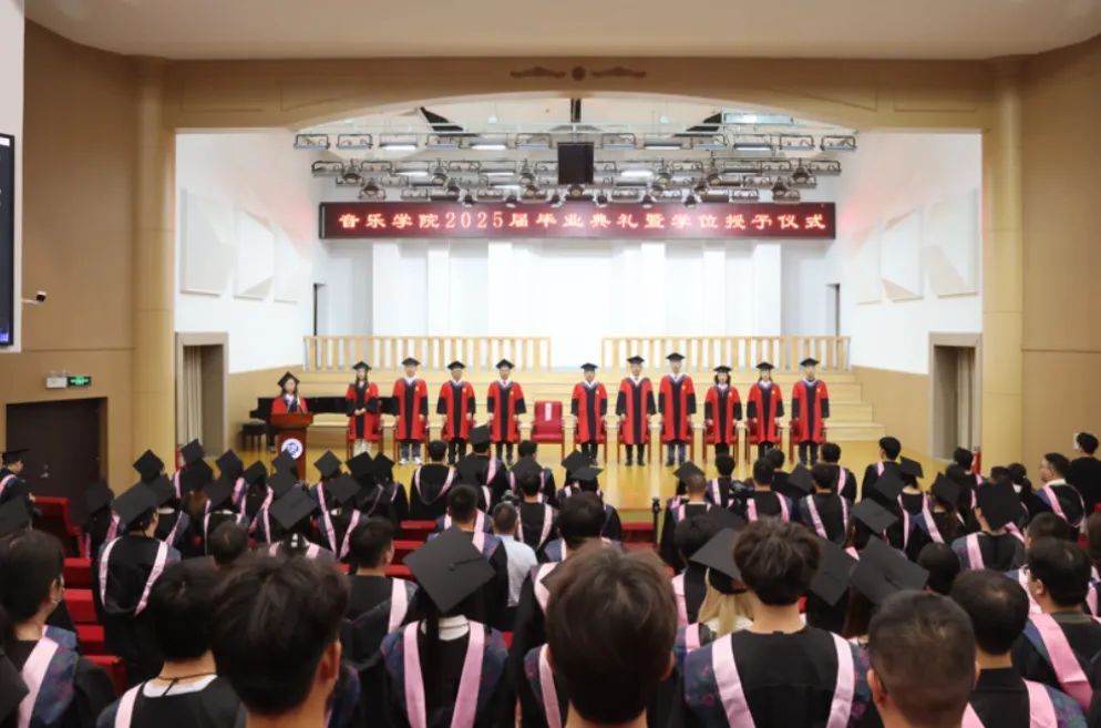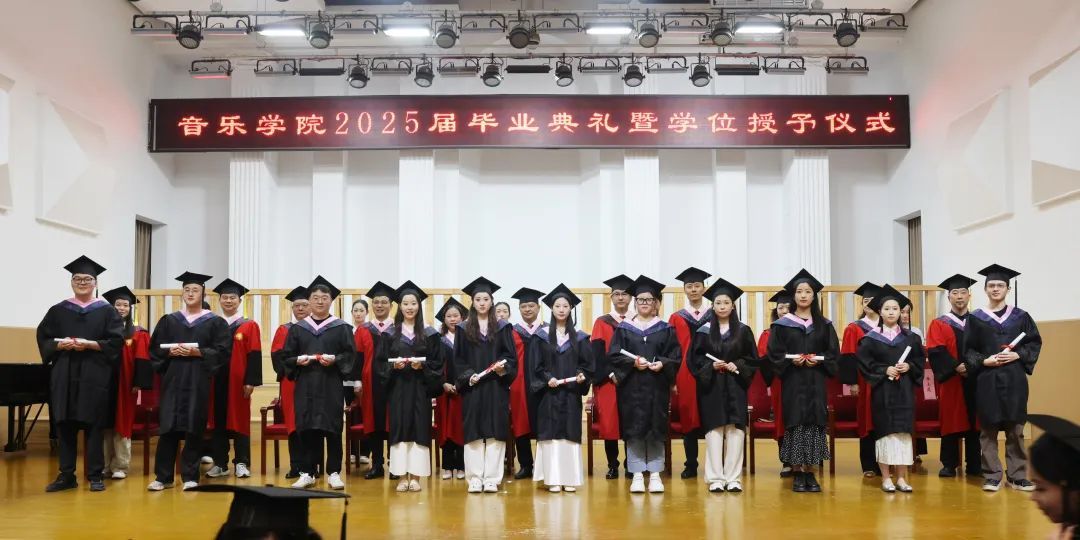 2025届本科生毕业典礼暨学位授予仪式在音乐厅庄重而热烈的氛围中圆满举行。学院领导、教师代表、全体毕业生及学生家长齐聚一堂,共同见证了这一重要时刻。典礼由党委副书记柴芳主持。