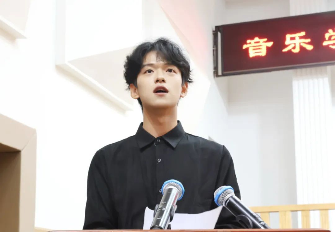 教师代表李申寄语毕业生们要保持对音乐的热爱与追求,用音乐传递正能量,为社会贡献自己的力量。