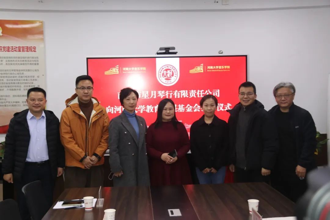 12月31日下午,南阳市星月琴行有限责任公司向河南大学教育发展基金会捐赠仪式在K7娱乐 党建活动室举行。星月琴行有限责任公司捐赠10万元,用于学院教育发展建设。河南大学教育发展基金会秘书长刘婷,捐赠方南阳市星月琴行有限责任公司总经理王景玲,K7娱乐 党委书记王志国,院长王思琦,党委副书记柴芳,副院长王聚伍,钢琴系主任潘伟,团委副书记赵瑞新及各系主任和师生代表参加了捐赠仪式。仪式由柴芳主持。