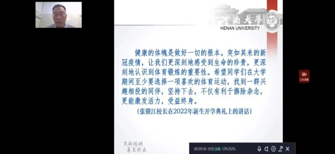 王学春深入讲解了我校各个阶段的发展故事,使同学们深刻体会到了“明德新民,止于至善”的校训和“百折不挠、自强不息”的河大精神。有利于同学们传承学校的精神文化,增进爱校荣校情怀。
