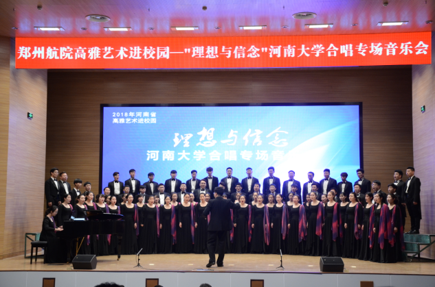 副院长韩梅教授任团长,袁凯副教授任指挥,是一支文化修养深厚的优秀学生社团,在世界合唱比赛(World Choir Games)、中国音乐金钟奖合唱比赛、教育部大学生艺术展演、中国合唱节、中国国际合唱节、中国嘉陵江合唱节、中国黄龙洞国际合唱艺术周、中国黄河合唱周、河南省音乐金钟奖合唱比赛、河南省合唱节等国内外合唱重要赛事中屡获殊荣。