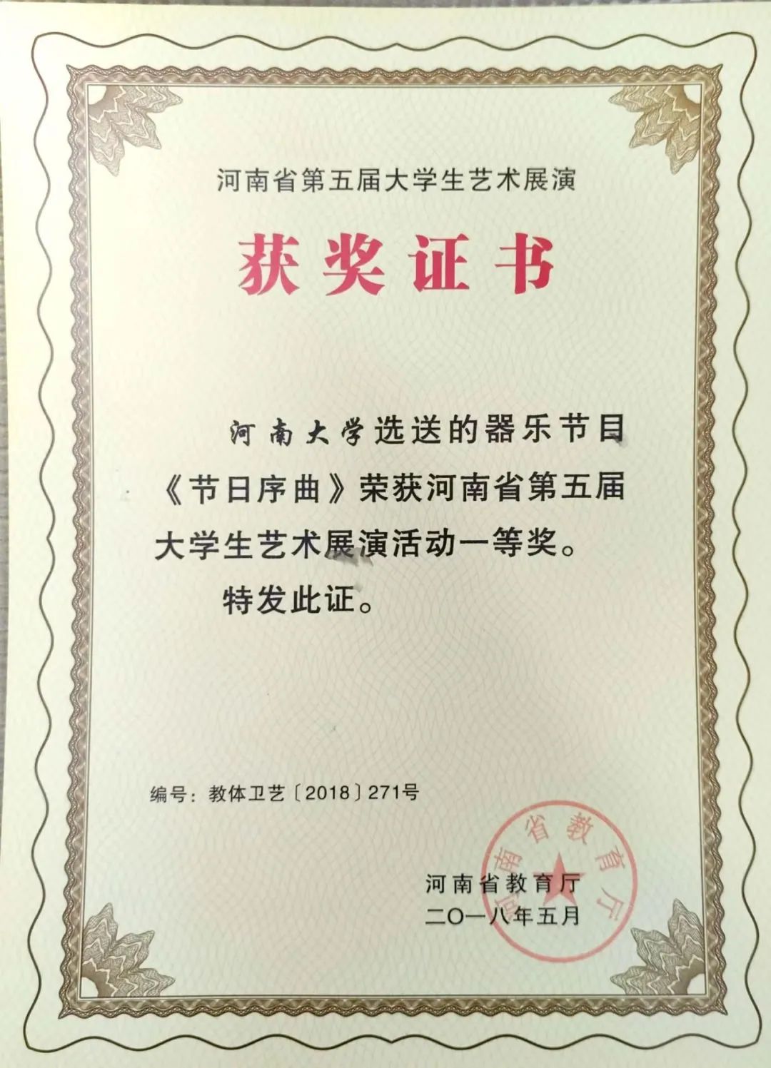 2020年12月,河南大学至善交响乐团荣获“全国第六届大学生艺术展演河南赛区一等奖”,并参加了河南省教育厅在周口师范学院举办的河南省第六届大学生艺术展演器乐专场现场展演。2021年5月获“全国第六届大学生艺术展演专业组三等奖”。