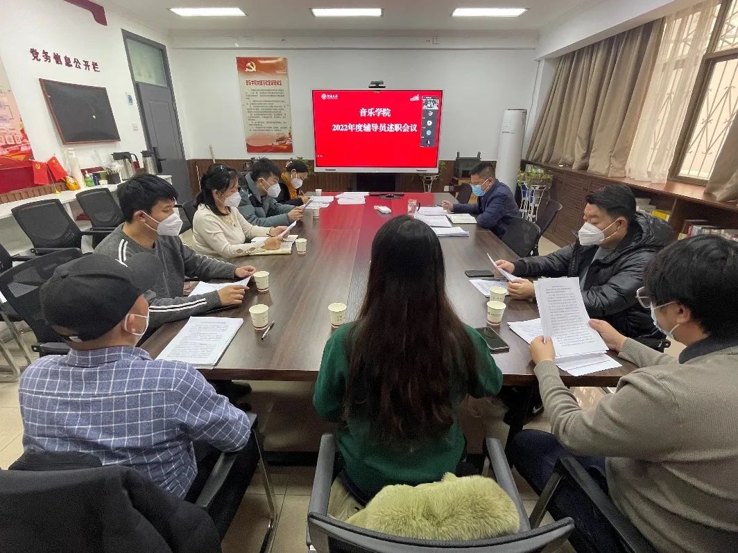 2022年度党支部书记、辅导员述职评议考核会议在学院党建活动室举行。学院党委书记王志国,院长王思琦,党委副书记柴芳,组织员徐书耀及全体党支部书记、辅导员通过线上线下形式参会。会议由王志国主持。