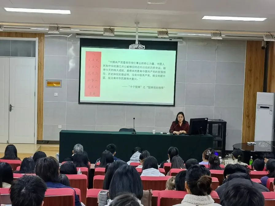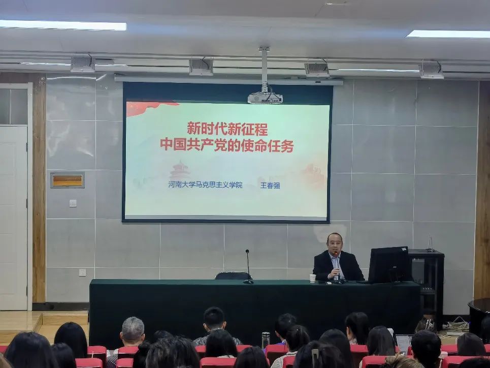 王春强以“新时代新征程中国共产党的使命任务”为题,从四个方面为同学们讲解了新时代新征程中国共产党的使命任务、战略安排和目标任务。引导同学们把握前进道路上的重大原则,自觉响应新时代新征程新使命的伟大号召,做德才兼备、又红又专的社会主义建设者和接班人。