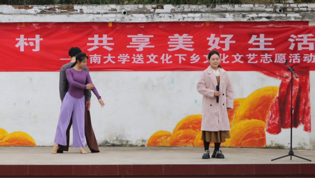 团委选送的节目也一同走进河南大学定点帮扶的开封市通许县竖岗镇前付村,送文化下乡,给乡亲们送上了一台精彩的文艺演出。