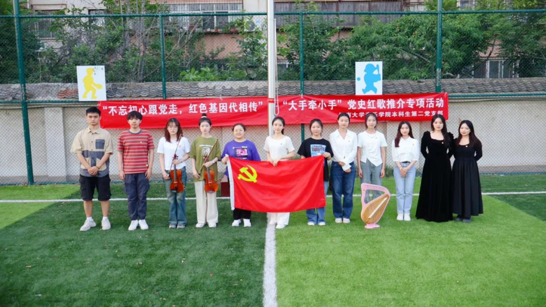 本科生第二党支部在支部书记李雨昕的带领下,赴中国开封SOS儿童村开展“不忘初心跟党走,红色基因代相传”—“大手牵小手”党史红歌推介专项活动。此次活动依托爱国主义教育方针,贯彻爱国主义教育,以红歌教学和欣赏的方式来正确认识党的光荣历史、伟大成就和宝贵经验,激发学生热爱祖国、热爱党的真挚情感。